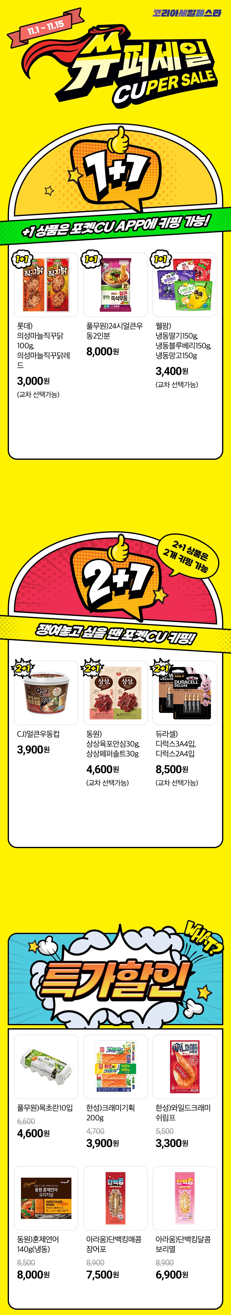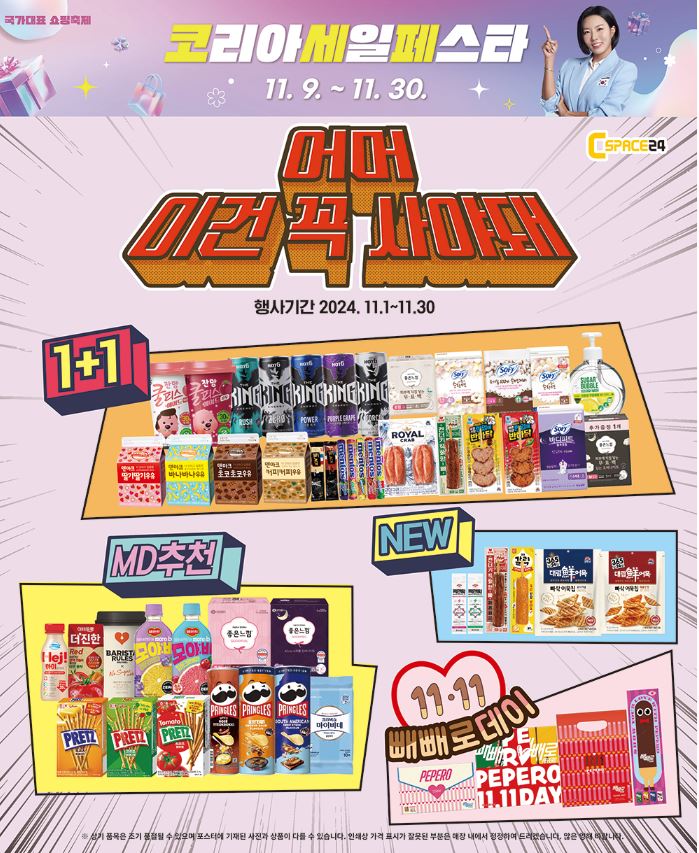 이 밖에도 빼빼로데이 할인, 편의점 이색상품인 주류 할인 및 다양한 품목에 1+1, 2+1 할인 행사를 진행합니다.