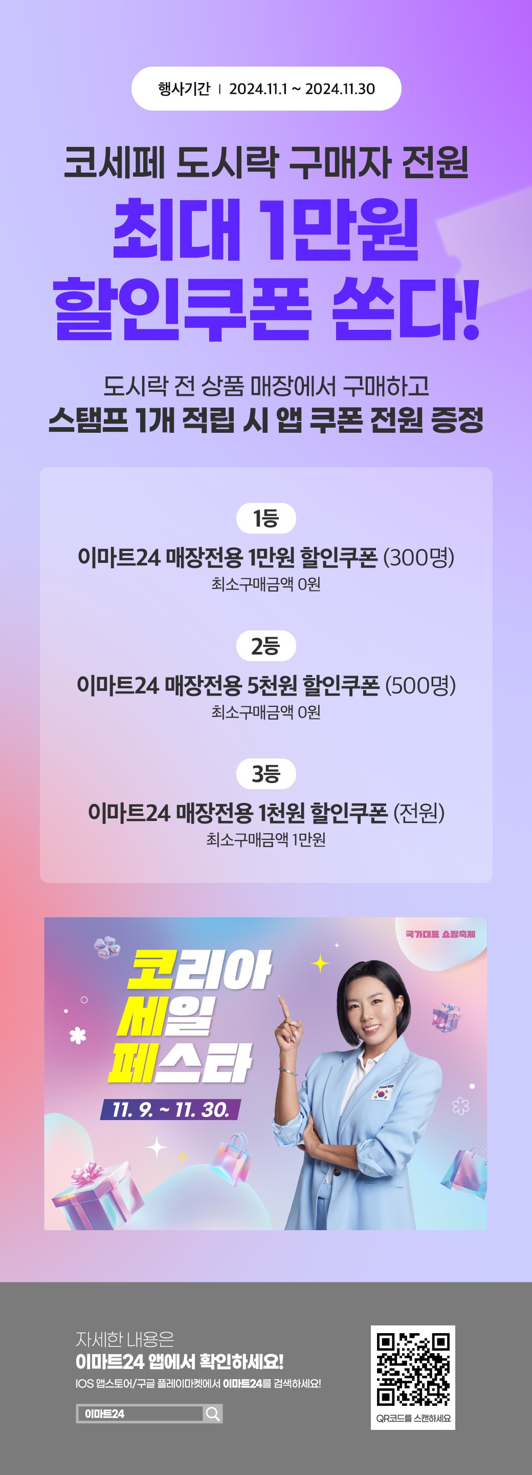 도시락 전상품 구매 후 APP 응모 시 이마트24 쿠폰 증정